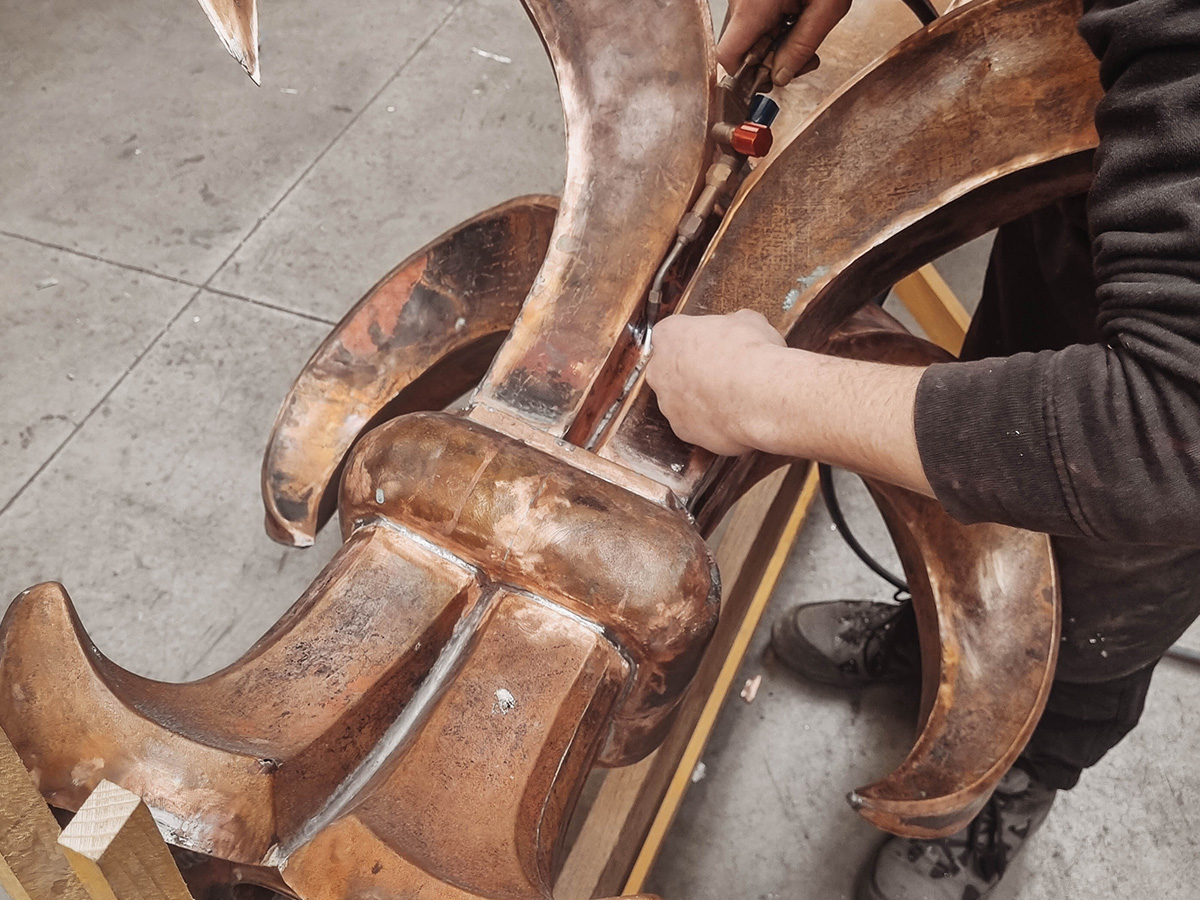 En tant qu’atelier dédié à l’art du cuivre, nous nous efforçons de rester à la pointe de notre métier. La formation continue, la recherche de techniques complémentaires telles que la dinanderie, les patines et la fonderie sont au cœur de notre démarche, nous permettant de créer des ornements de toiture en cuivre qui allient tradition et innovation.