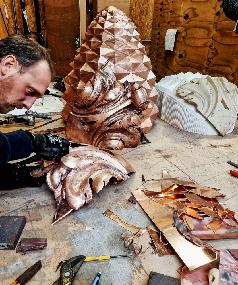 Un savoir-faire ancré dans la tradition : restauration et reproduction d'ornements de toiture en cuivre, zinc et plomb