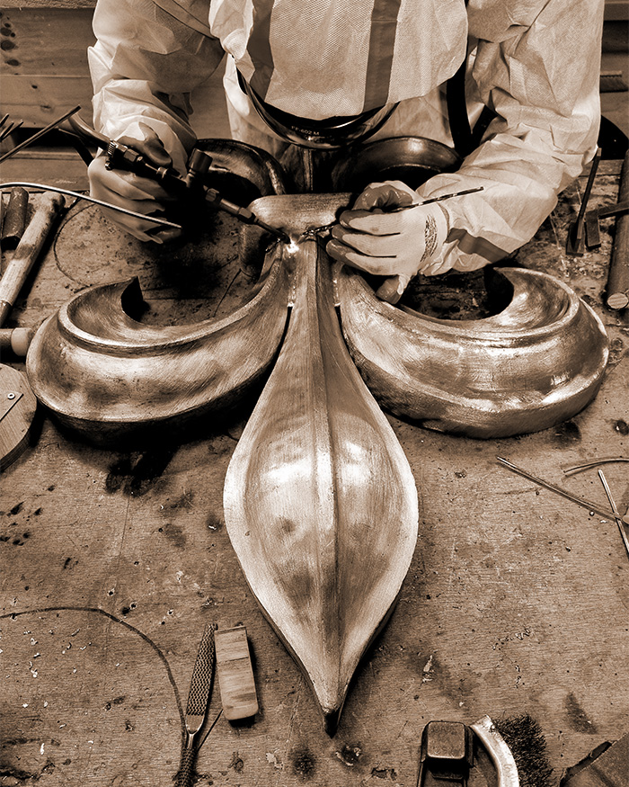 La maîtrise des techniques complémentaires telles que la ferronnerie d’art, la dinanderie, les patines et la fonderie est essentielle pour garantir la création de nos ornements.