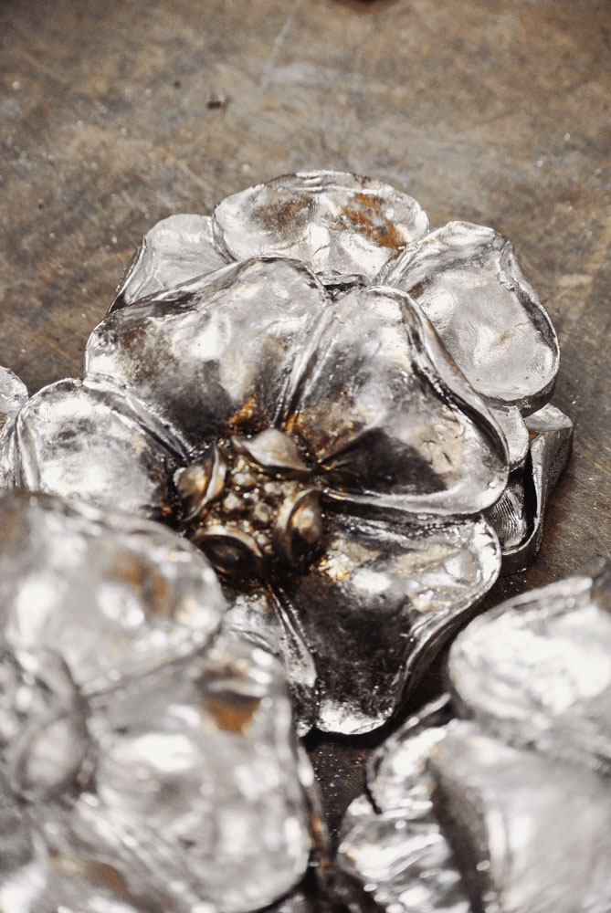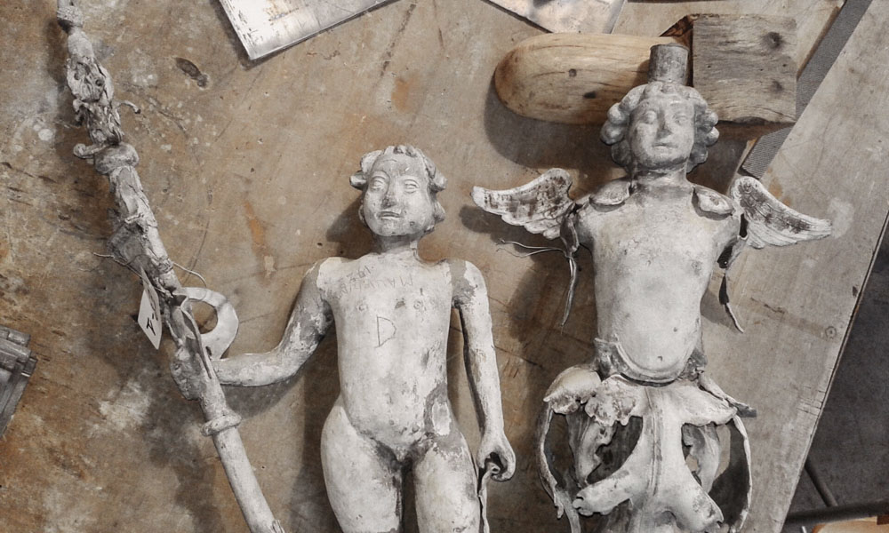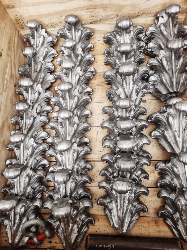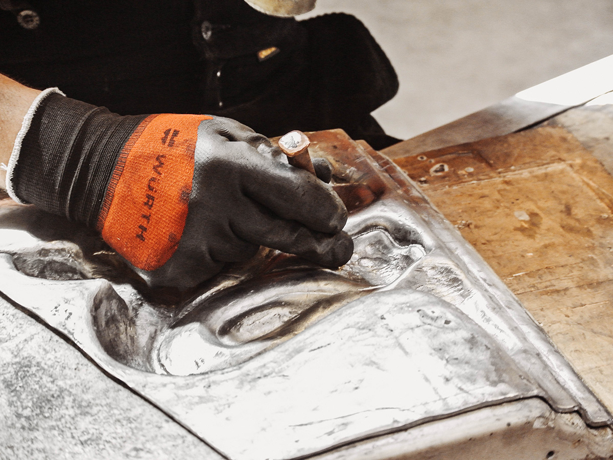 Les ornemanistes, artisans d’art spécialisés dans le travail du plomb, martèlent, repoussent, battent, écrouissent, coulent, fondent encore et à l’infini pour redonner vie à ces fines feuilles argentées.