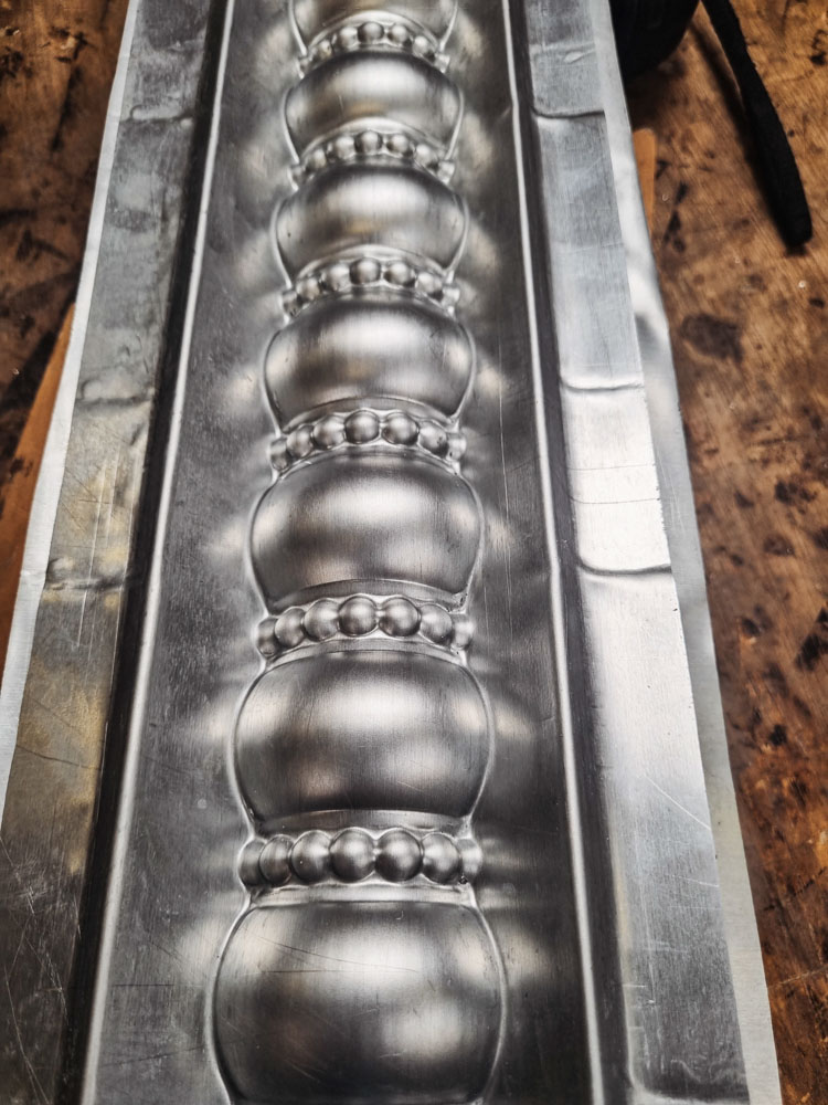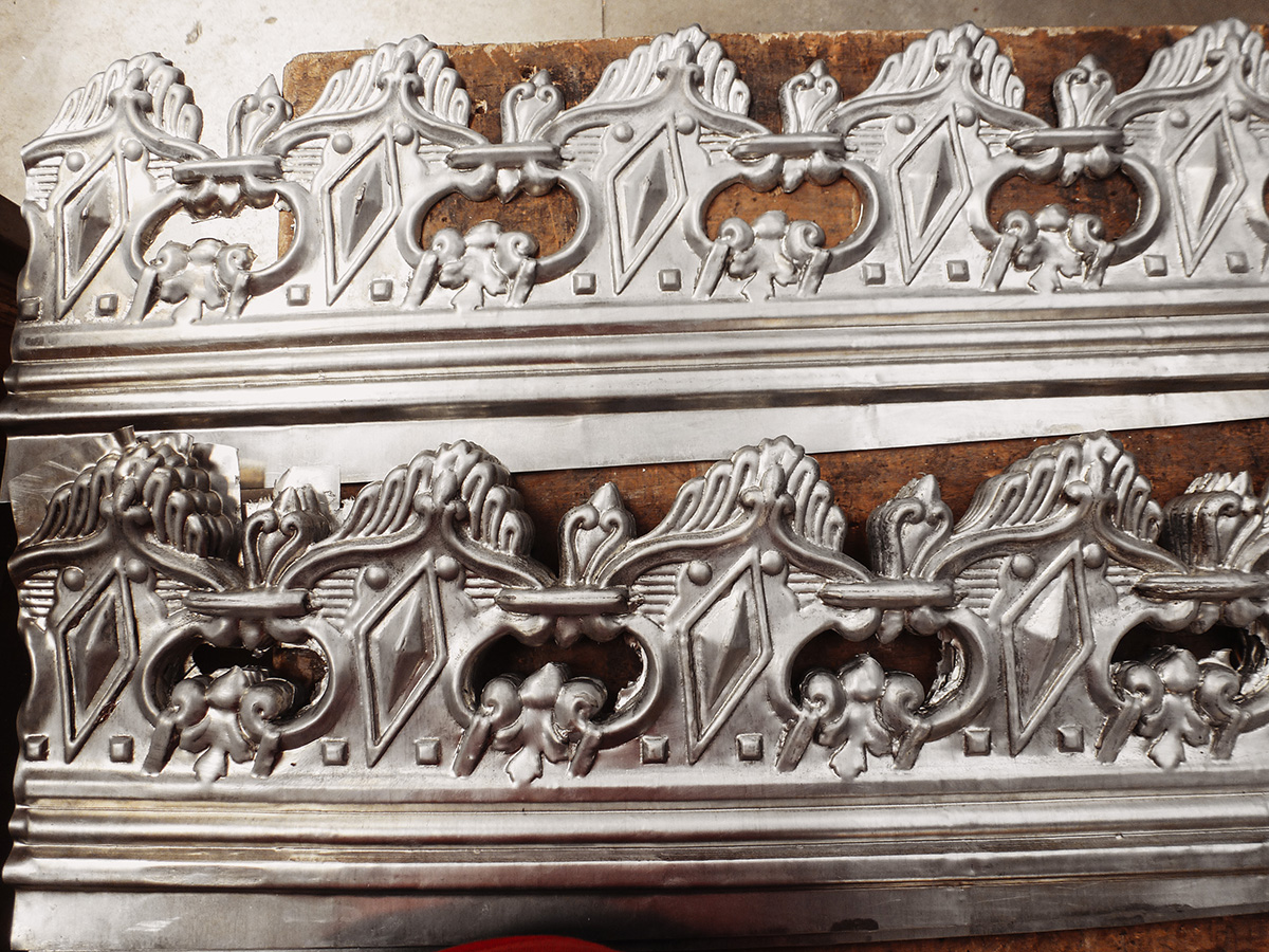 Grâce à la grande diversité de décors dont nous avons hérité, Il demeure un matériau prisé pour la restauration du bâti ancien. Nous nous attachons à rendre toutes leurs finesses à nos ornements estampés et toutes les courbes à ceux que l’ont repoussent.