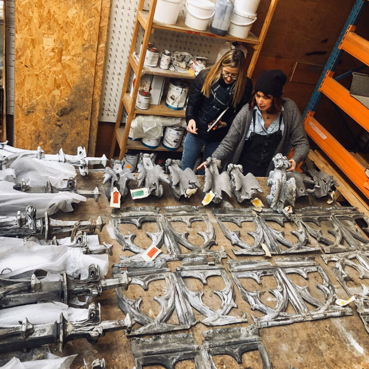 Restitution des gargouilles en plomb martelé d’après les modèles originaux des ateliers Monduit.