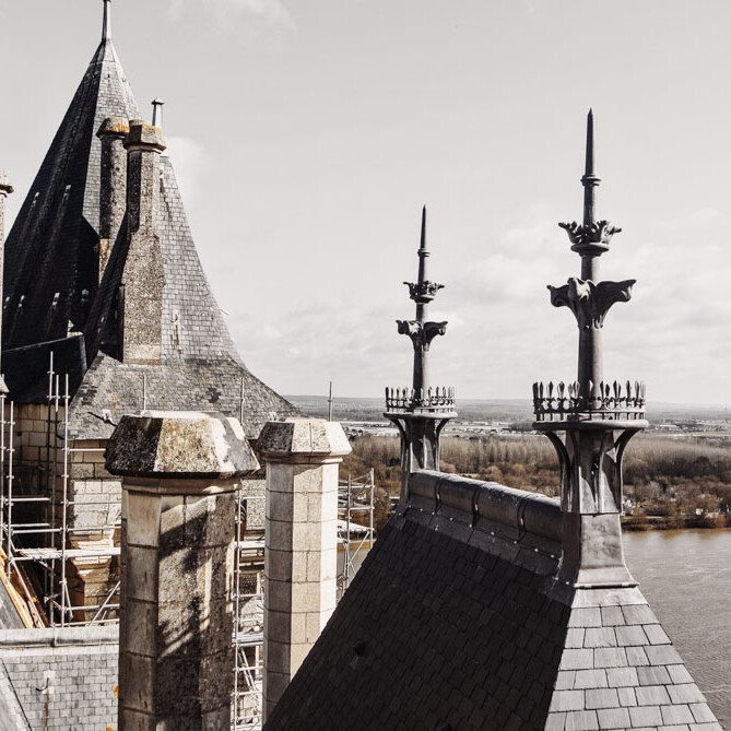 Au Château de Saumur, le plomb est transformé par Loire Ornements avec une habileté remarquable, créant des ornements architecturaux qui allient finesse artistique et robustesse, mettant en valeur le caractère historique et esthétique du monument.